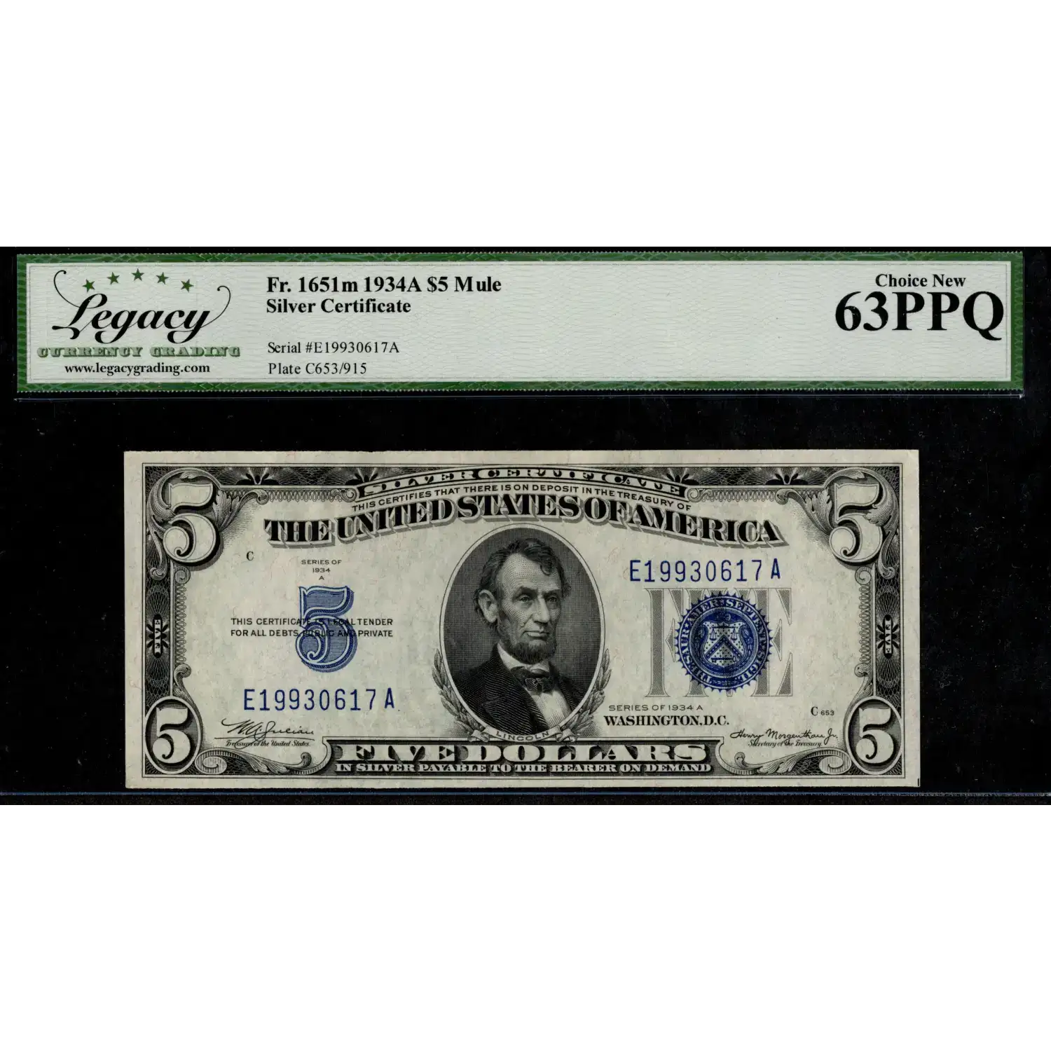 An exciting 1934-A $5 silver certificate mule that'sbeen preserved in attractive condition!