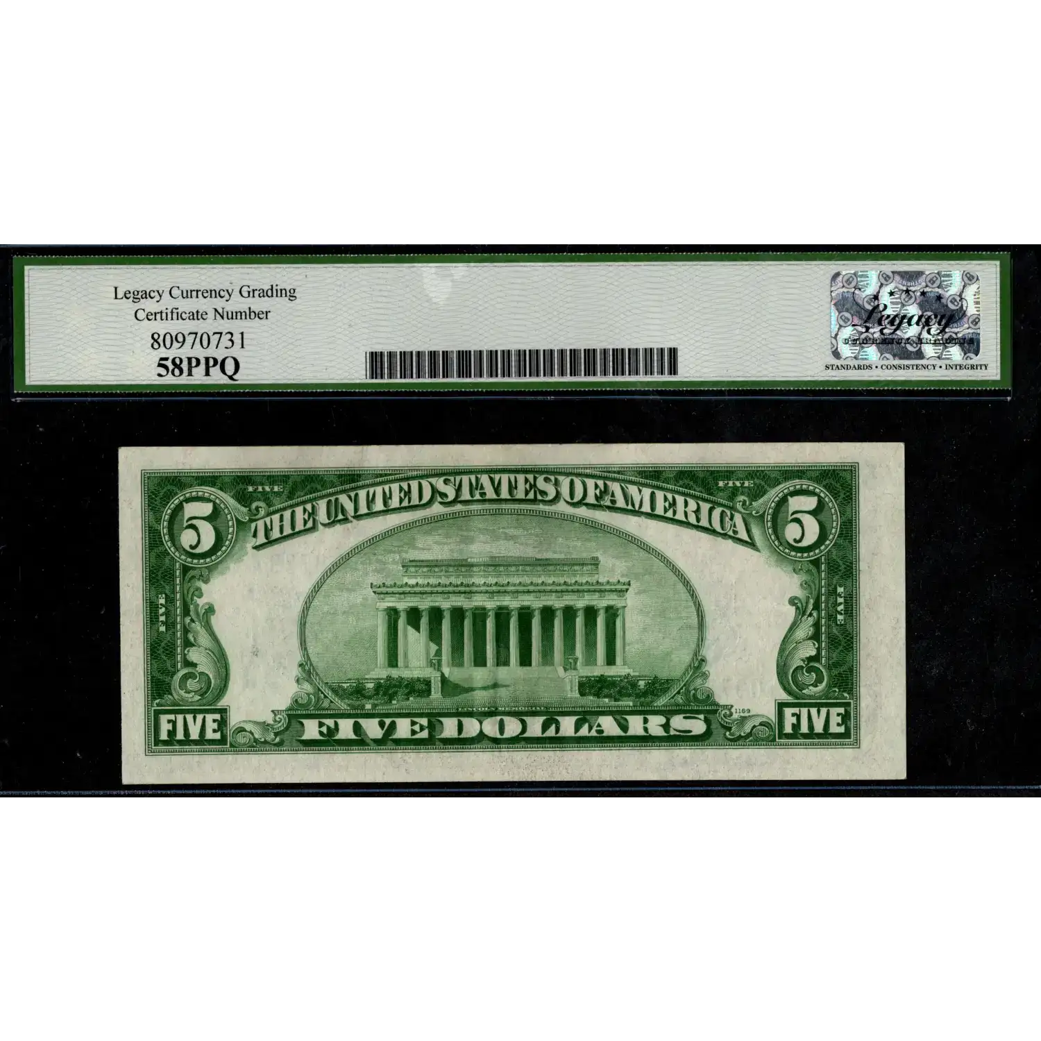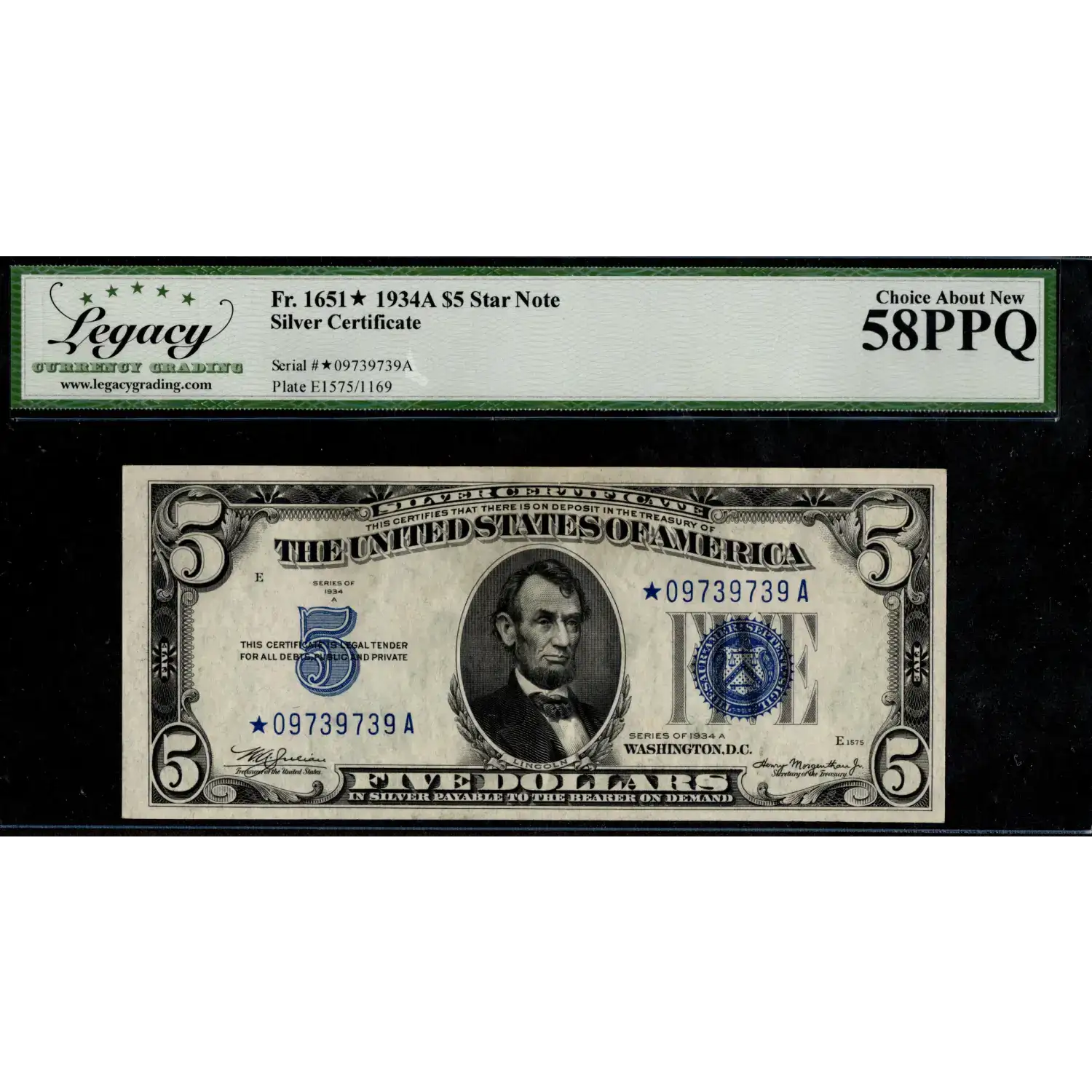 A seemingly uncirculated 1934-A silver certificate five dollar star note with fully-original paper and great eye-appeal!
