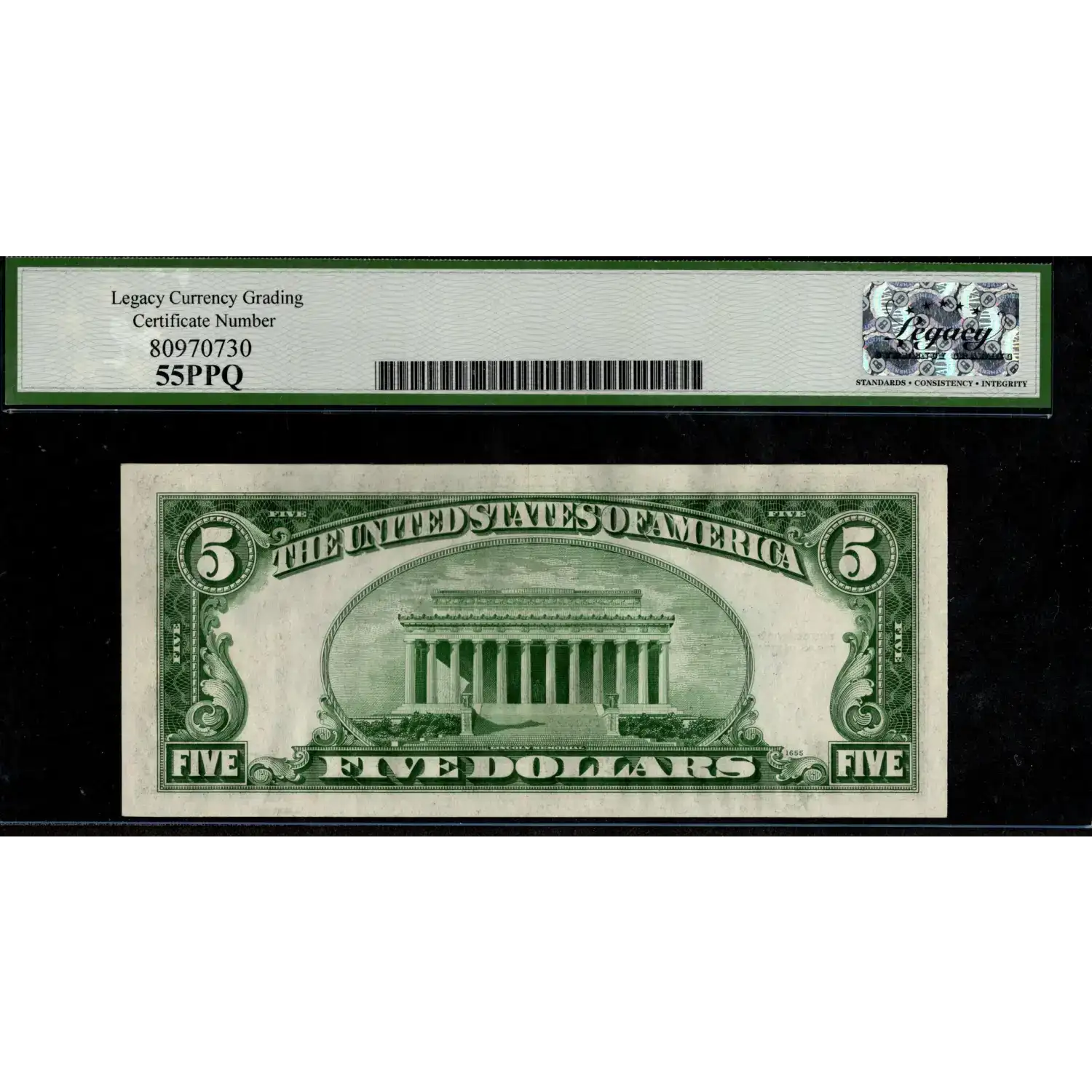 A seemingly uncirculated and fully-original $5 1934-A Silver Certificate!