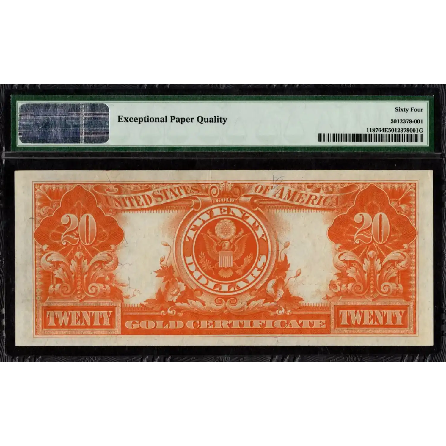 Teetering on the cusp of Gem, this gorgeous Gold Certificate has everything a collector desires and deserves. The paper is bright, the inks are bold, the margins are even, the back is vibrant, and the surfaces are entirely original...easly earning the Exceptional Paper Quality designation.