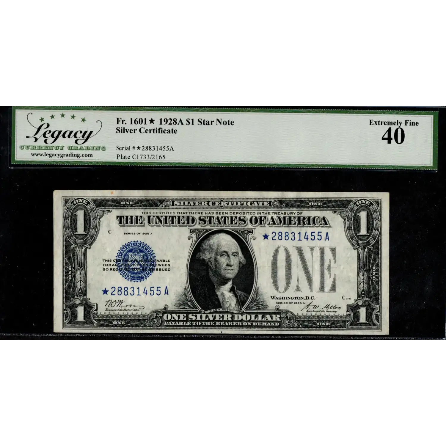 An attractive $1 1928-A Silver Certificate STAR note with a look that far exceeds its assigned grade. This funny back replacement note has incredible eye-appeal and is destined to please a collector!