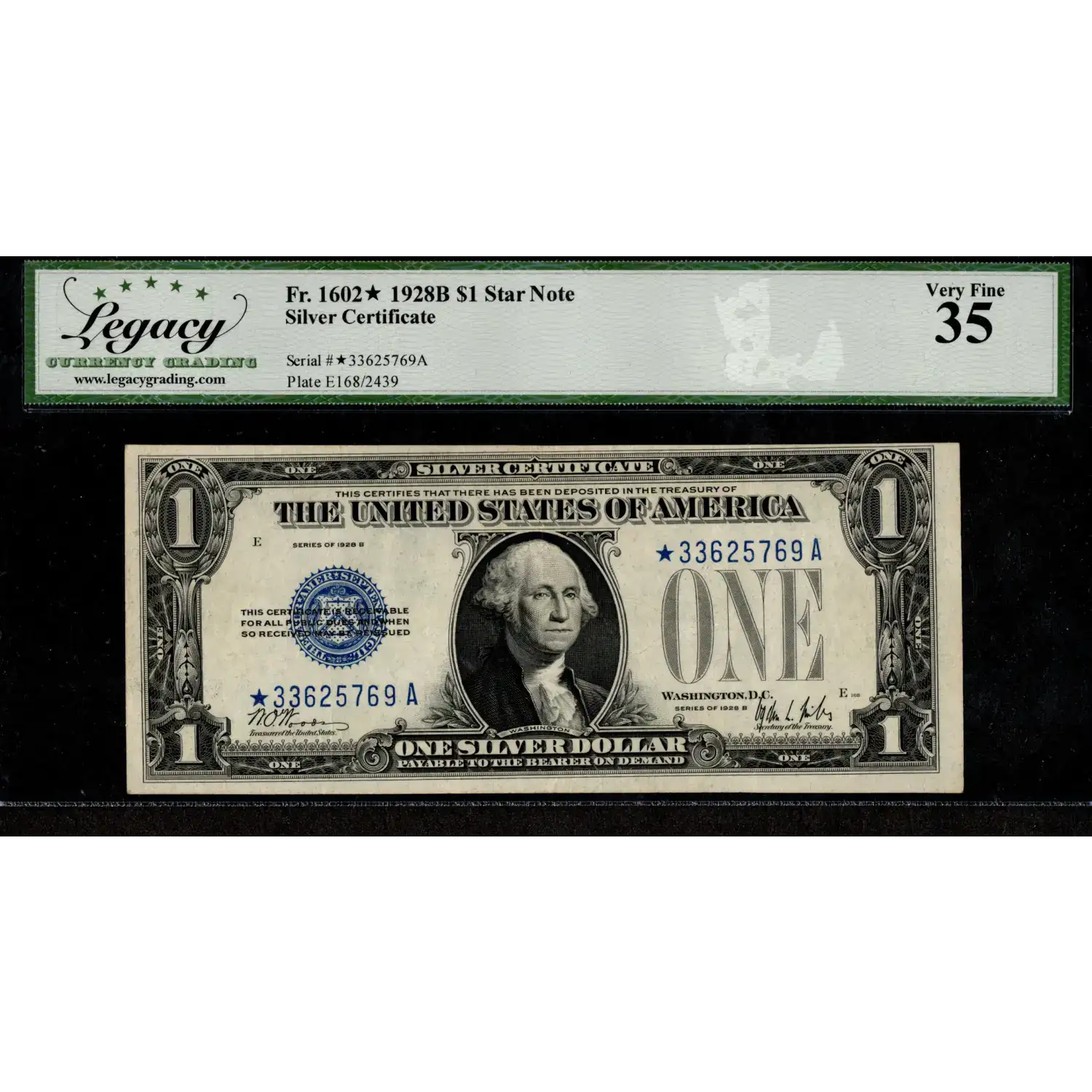 An exceptional opportunity to secure a seldom-offered $1 1928-B Silver Certificte STAR note! This Fr. 1602* is preserved with pleasing eye-appeal and a look that far exceeds its assigned grade.