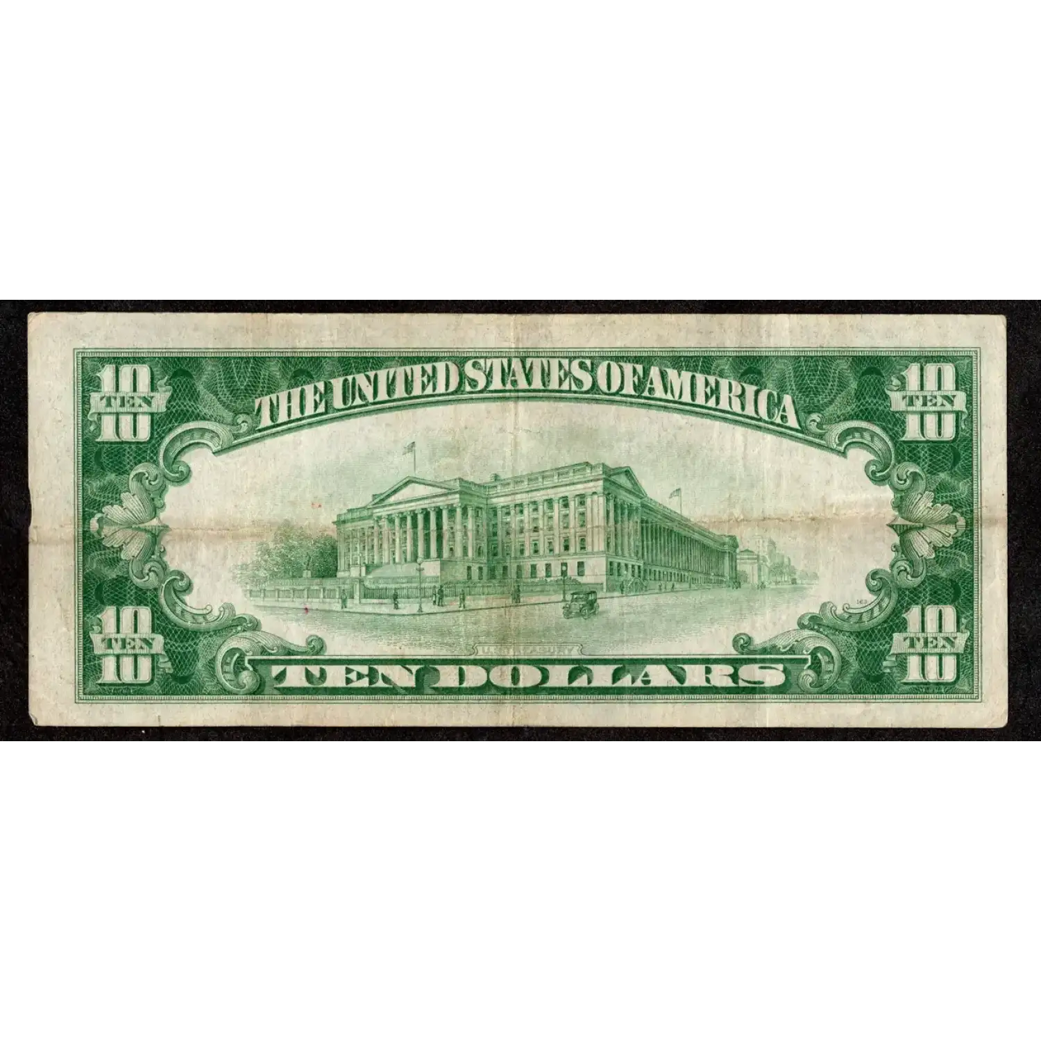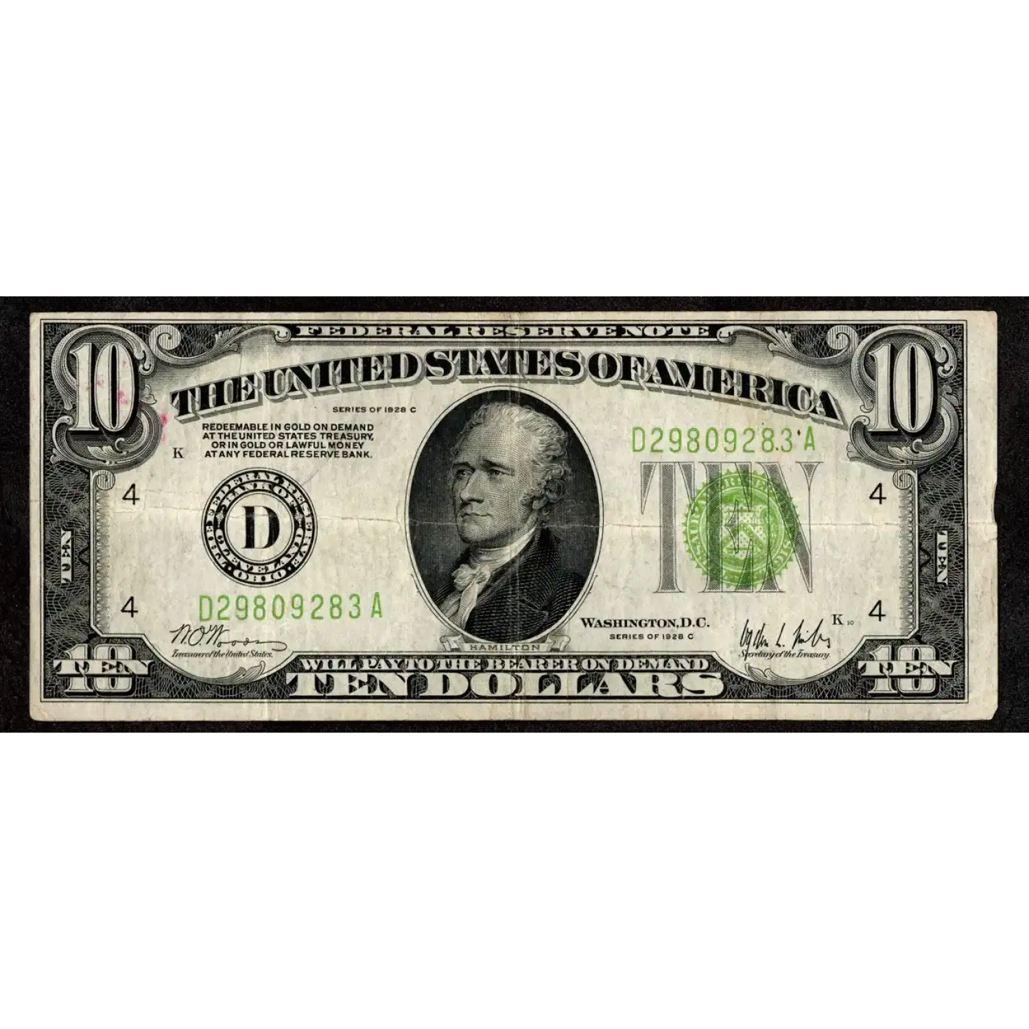 The Cleveland district 1928-C $10 is a rare note in any grade and rarely available in high-grade. This example has textbook VF handling with a few small pink spots in the upper left corner. This scarce note has of course traded hands a few times, but it remains a very pleasing example for a collector.