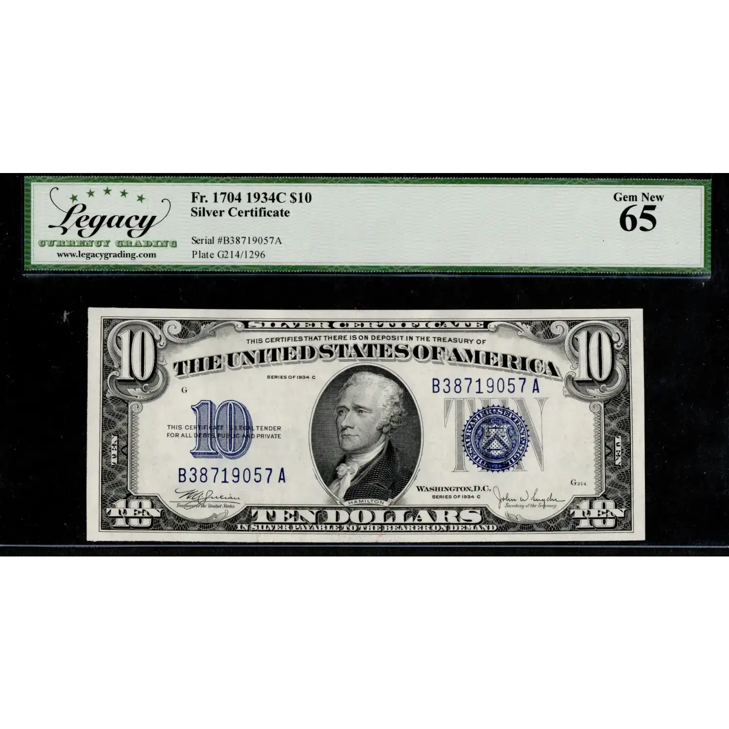 Nice centering and wonderful color are the hallmarks of this well preserved $10 1934-C Blue Seal Hamilton.