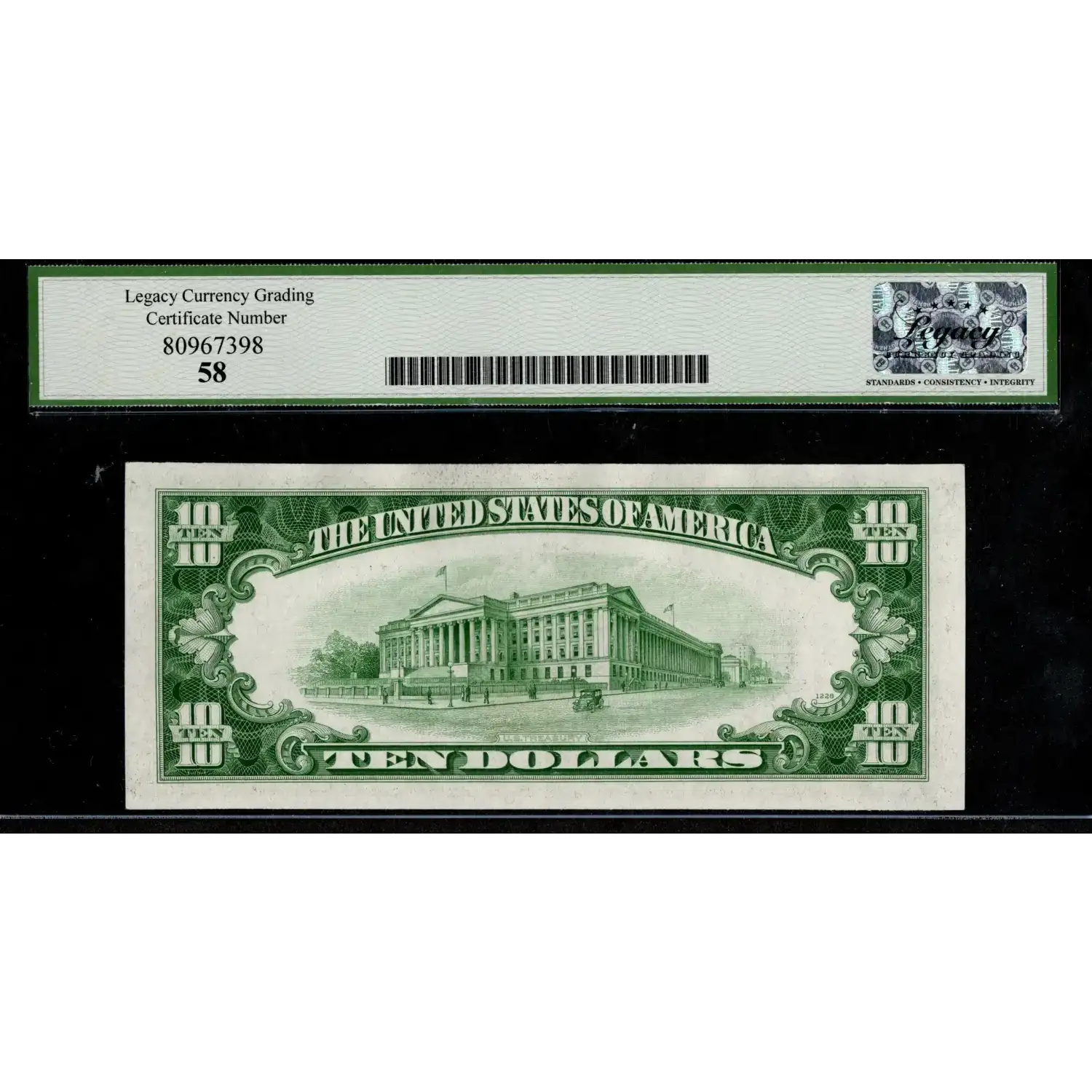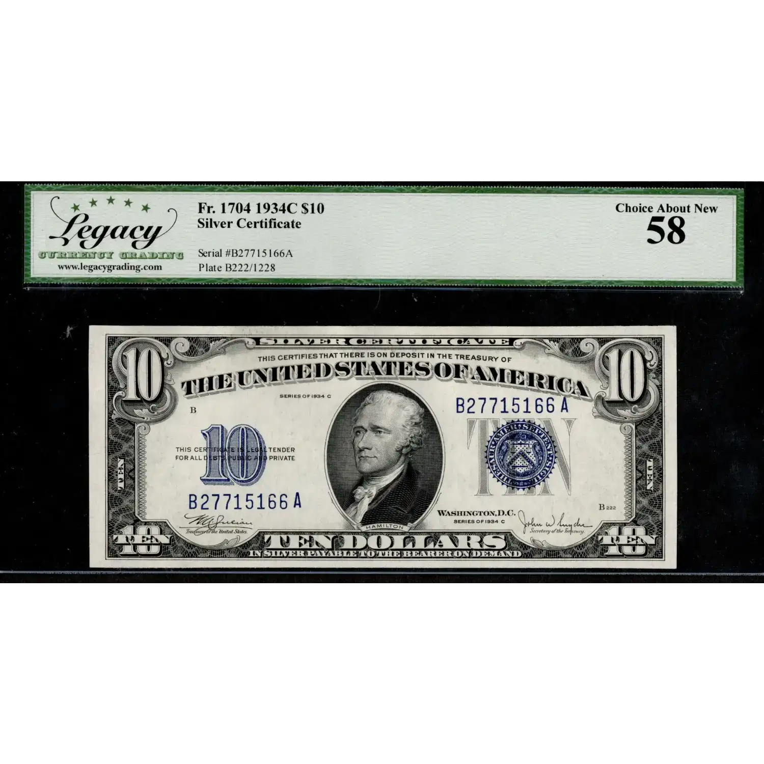 Nice centering and wonderful color are the hallmarks of this well preserved $10 1934-C Blue Seal Hamilton.