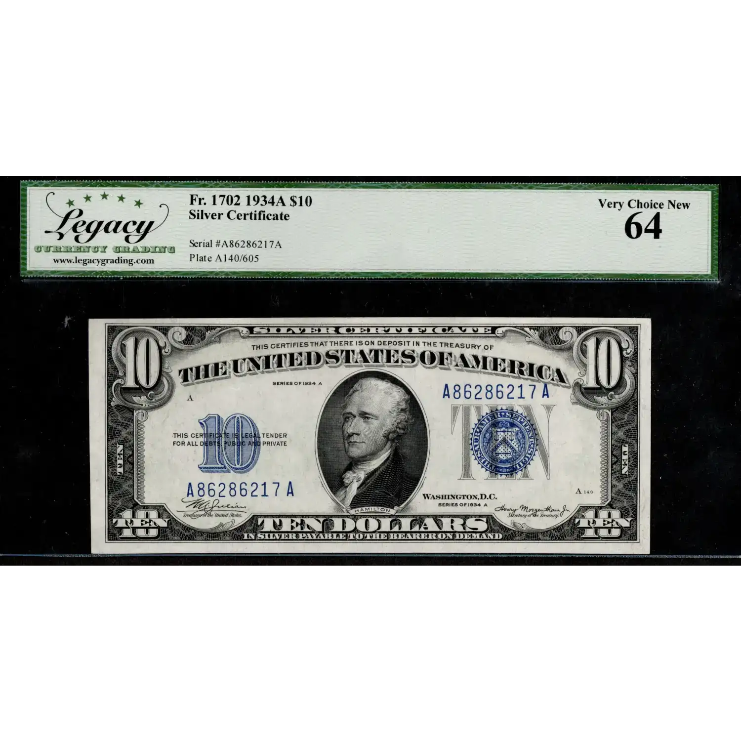 $10 1934-A Silver Certificate, Fr. 1702