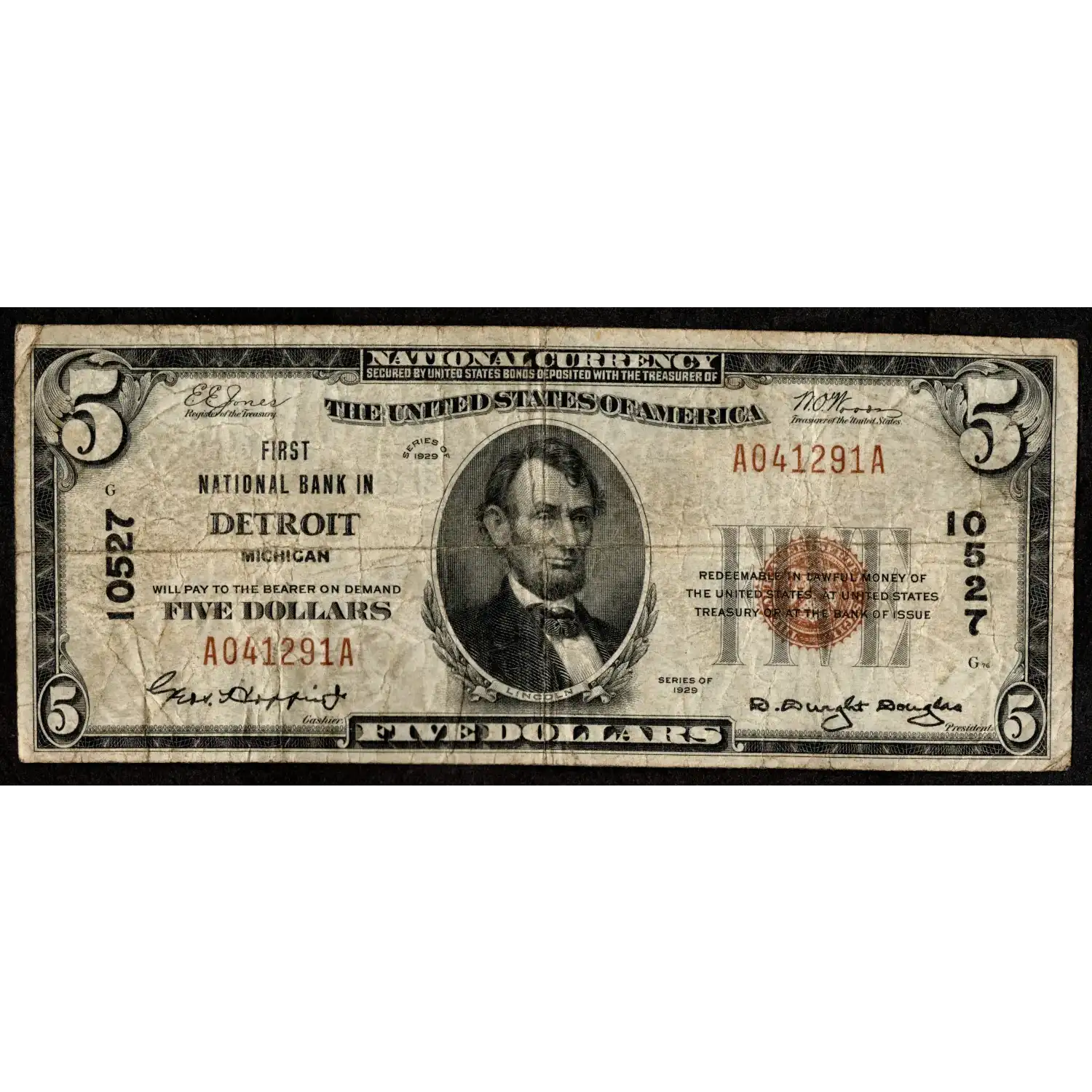 $5 1929 First National Bank in Detroit, MI Ch# 10527