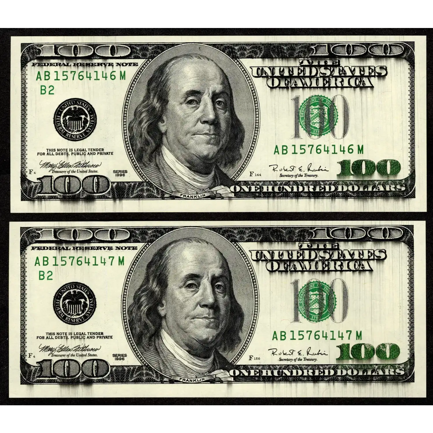 Securing a minor mistake on a hundred dollar denomination is impressive. Enhancing your collection with a consecutive pair of $100 1996 Ink Smear Errors featuring multiple dramatic black vertical smears on the face of each sequential big head hundred is not an opportunity that's likely to present itself again anytime soon. Each note remains entirely uncirculated and fully-original featuring too many ink smears to count on a tough denomination.