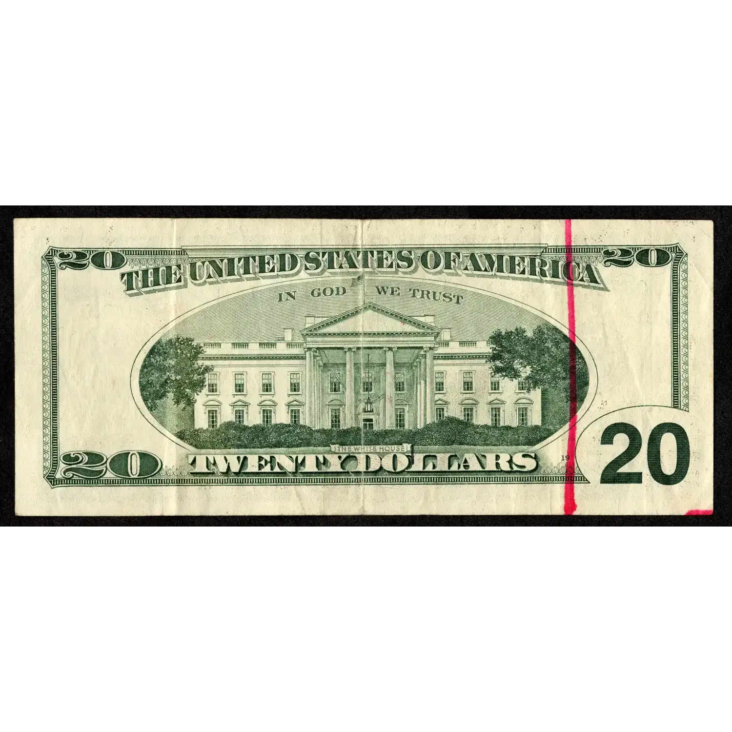 A cheap Big Head mistake on a Twenty delivered for $55! This partial back to face offset shows a portion of the first printing near the left side of the face. This note has a noticeable error on a sought-after denomination that's been given a generous discount for some pink ink on the back. We've provided high-resolution images of each side; therefore, please review this budget error to determine if this offset error is an ideal addition for your collection.