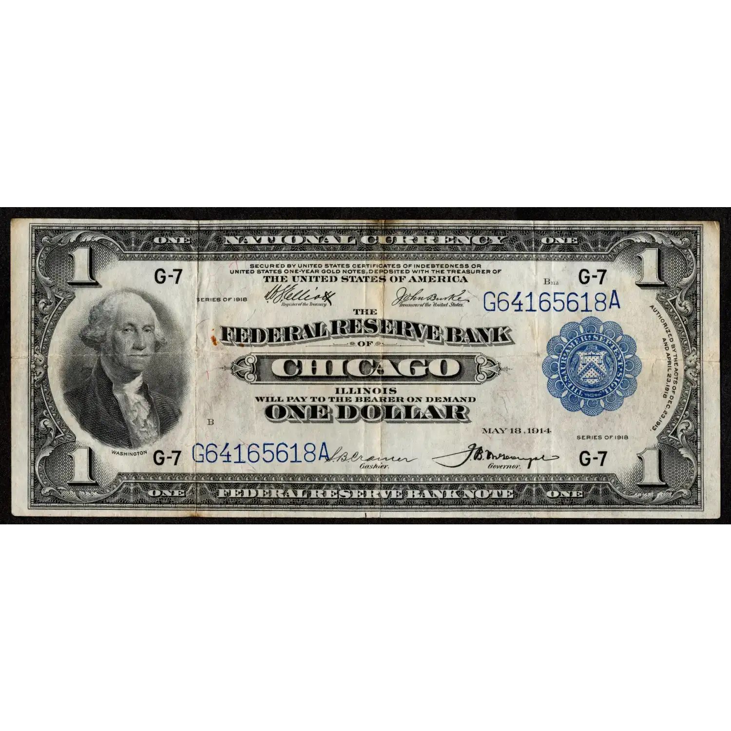 A lovely 1918 Ace from the Chicago district. This Federal Reserve Bank Note traded hands a few times, but escaped circulation in the popular mid-grade condition!