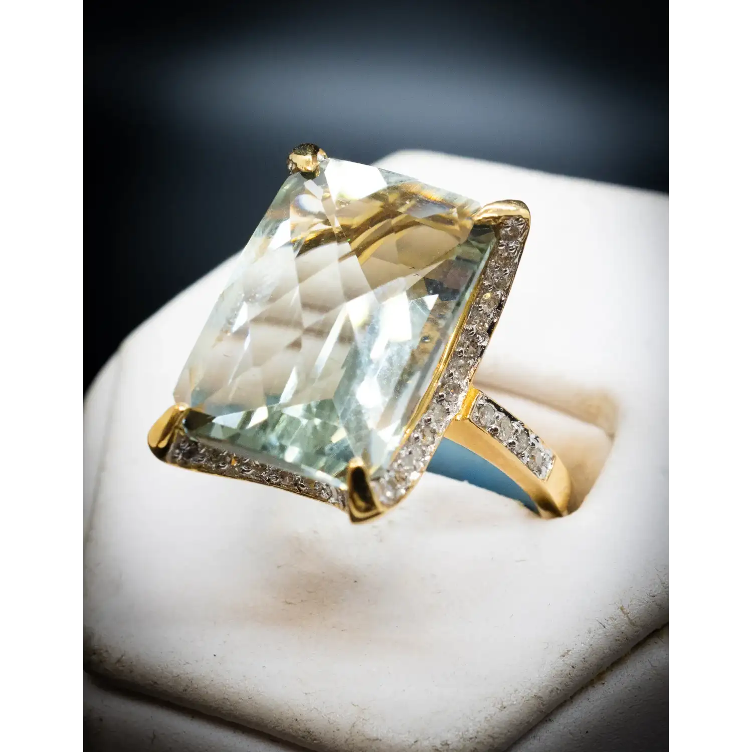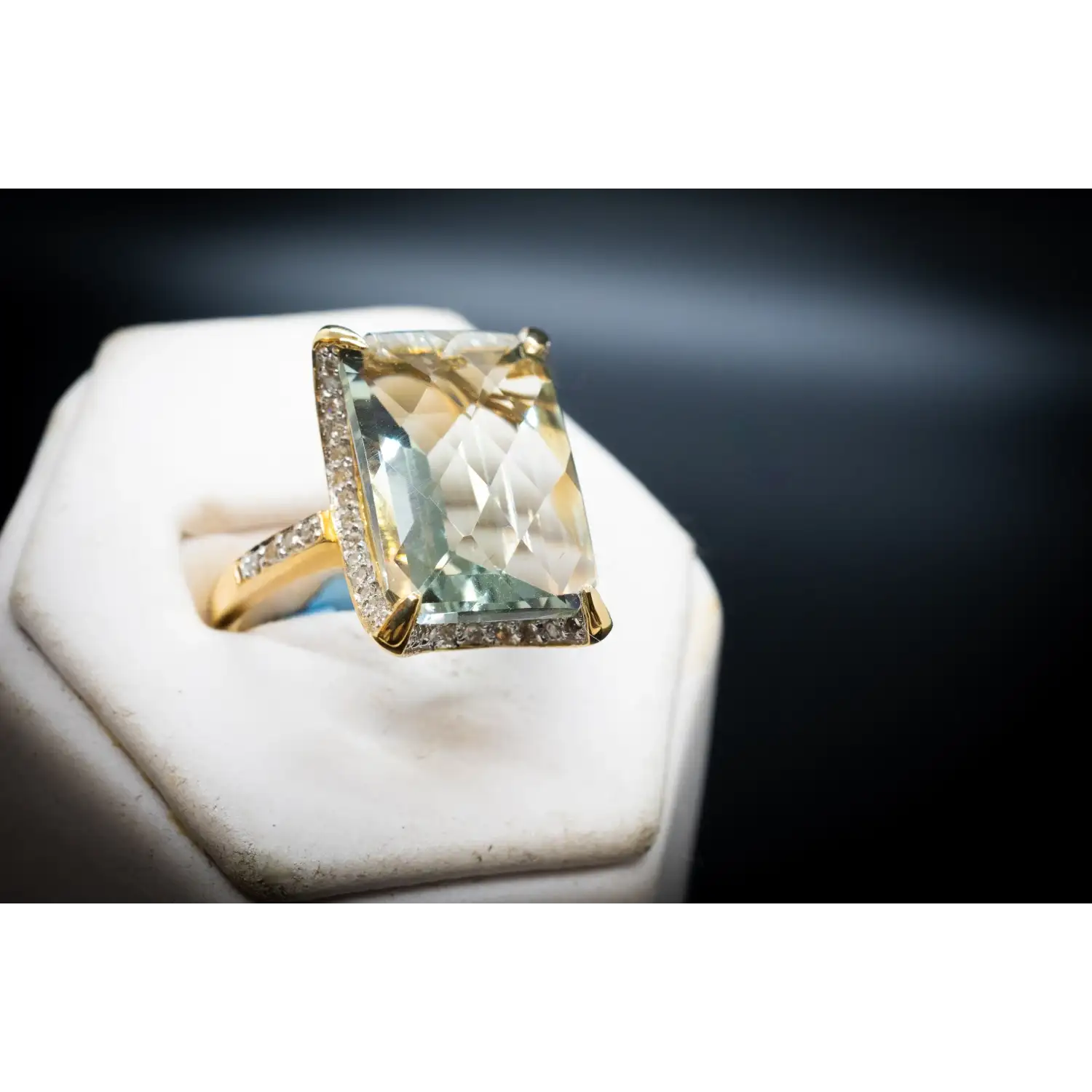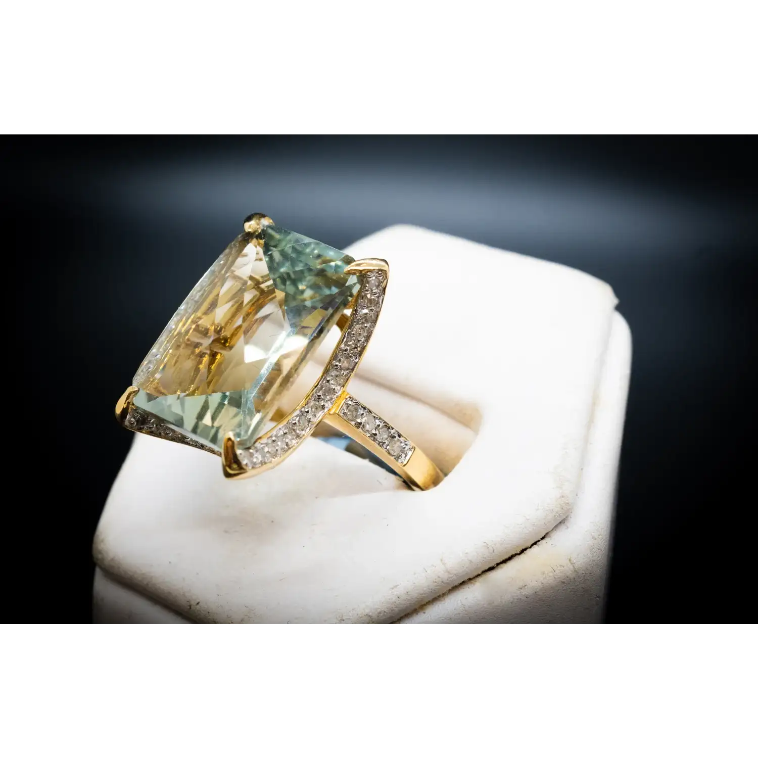 Natural Diamonds + Fantasy Cut Large Green Stone Ring