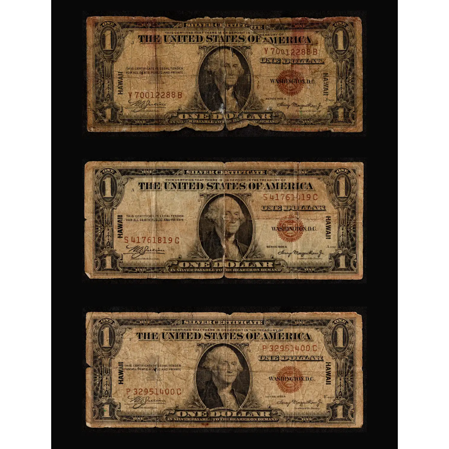 SET of 3: $1 1935-A Hawaii - WWII Emergency Issue