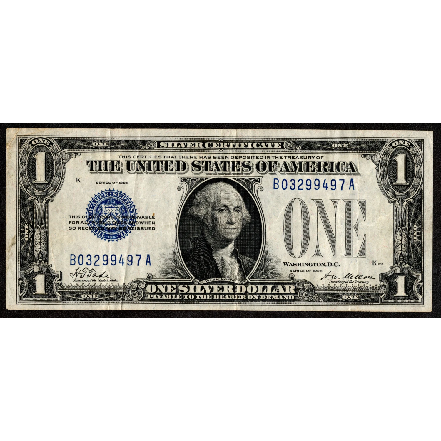 A foundational note for any small-size collection, this $1 1928 Silver Certificate (Fr. 1600) represents the first year of small-size U.S. currency—a landmark transition from the large-size notes of earlier decades.