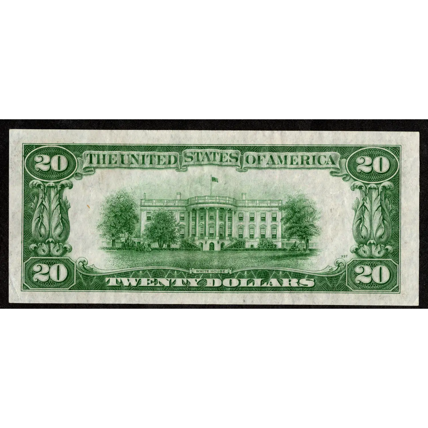 A crisp, high-end example of the 1934-A Chicago $20 Federal Reserve Note, this Fr. 2055-G features bright paper, strong embossing, and bold overprints—everything you expect from a Choice Extremely Fine to Choice About Uncirculated early-design twenty.