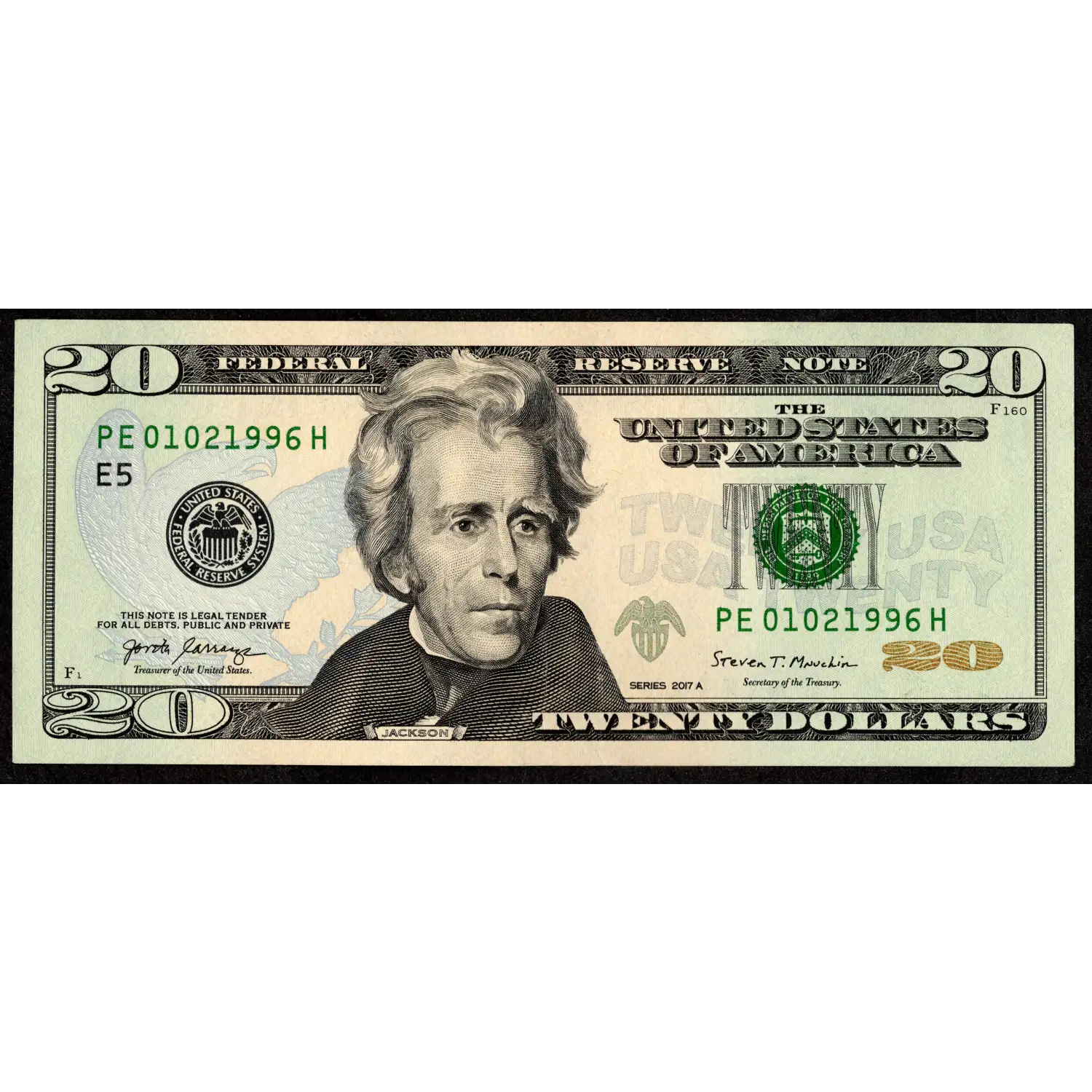 A fantastic birthday or anniversary note, this $20 2017-A FRN carries the highly desirable serial number 01021996—perfectly matching the date January 2, 1996. Date notes like these are prized for their personal significance and make exceptional gifts, keepsakes, or additions to any fancy-serial collection.