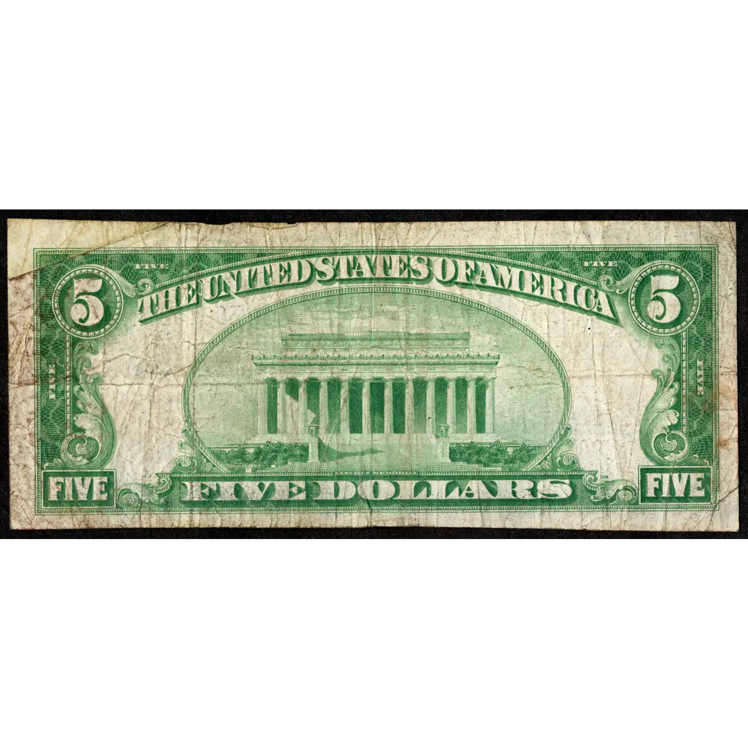 The only type and denomination issued by this tough Brookings County bank in small size, this is an evenly circulated $5 and it is one of just nine notes in the census. The last time this charter number crossed the auction block was in July 2025 when a PMG Very Fine 20 brought $1800 in a Heritage Sale.