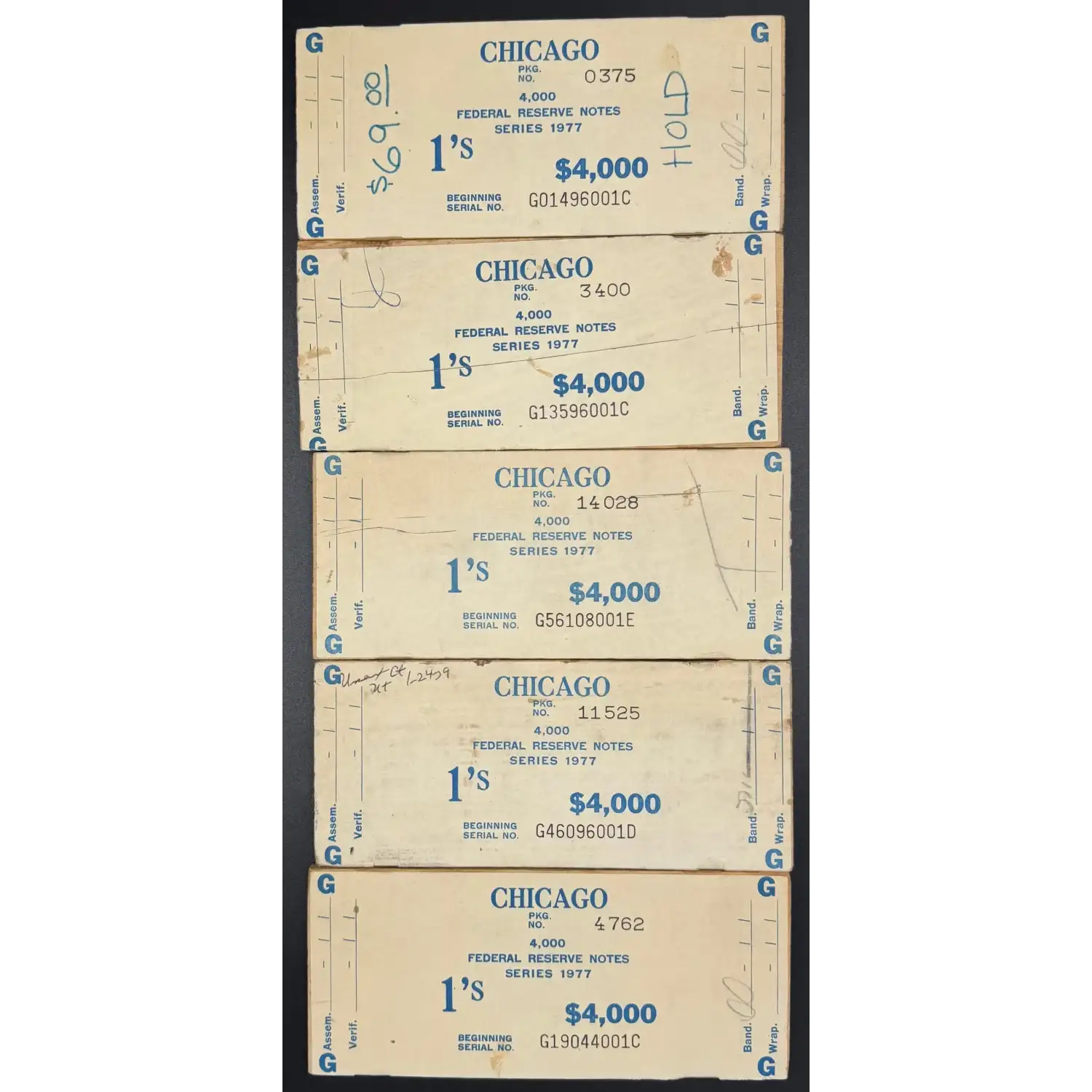 Set of 5: $1 Series 1977 FRN – Original BEP Wooden Brick Labels