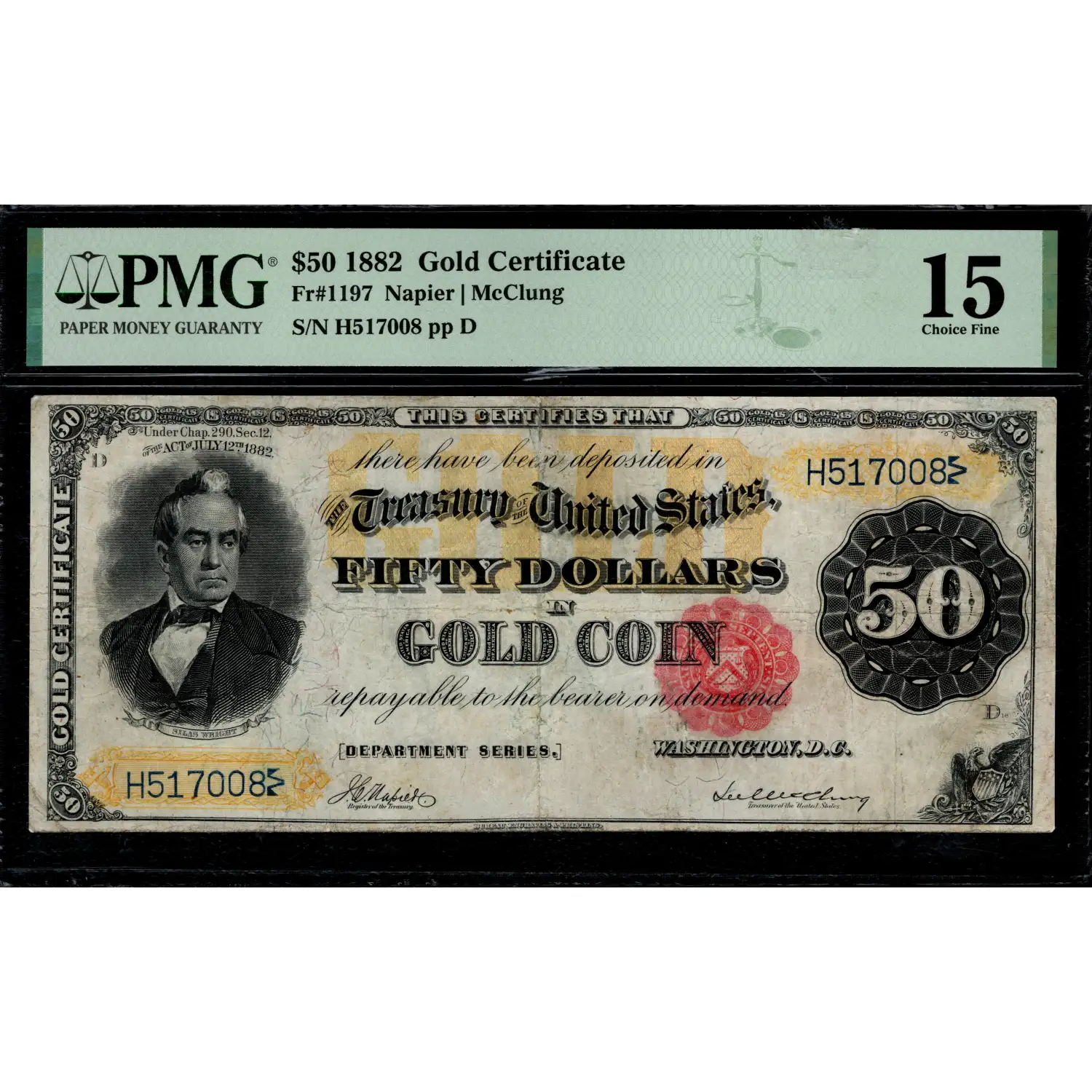 A pleasing example of an always in-demand note that has retained pleasing color on both sides. A small sealed tear is responsible for the comment of ‘repaired’ on the back. There aren’t many opportunities to secure an attractive example of this note without breaking the bank.