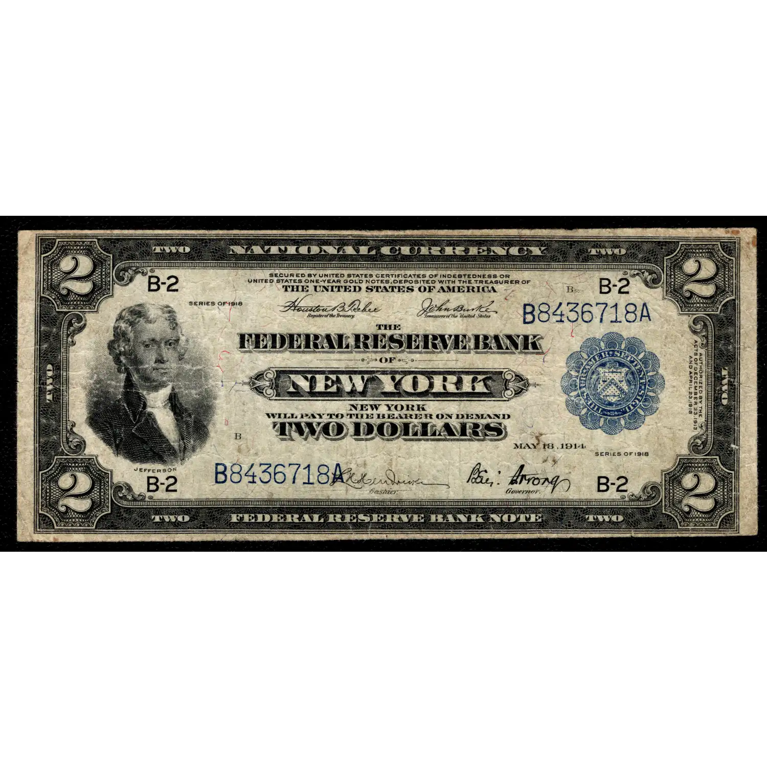 Representing the second scarcest of the three Friedberg numbers for the New York Battleship Deuces, this moderately circulated offering displays good color and solid paper.