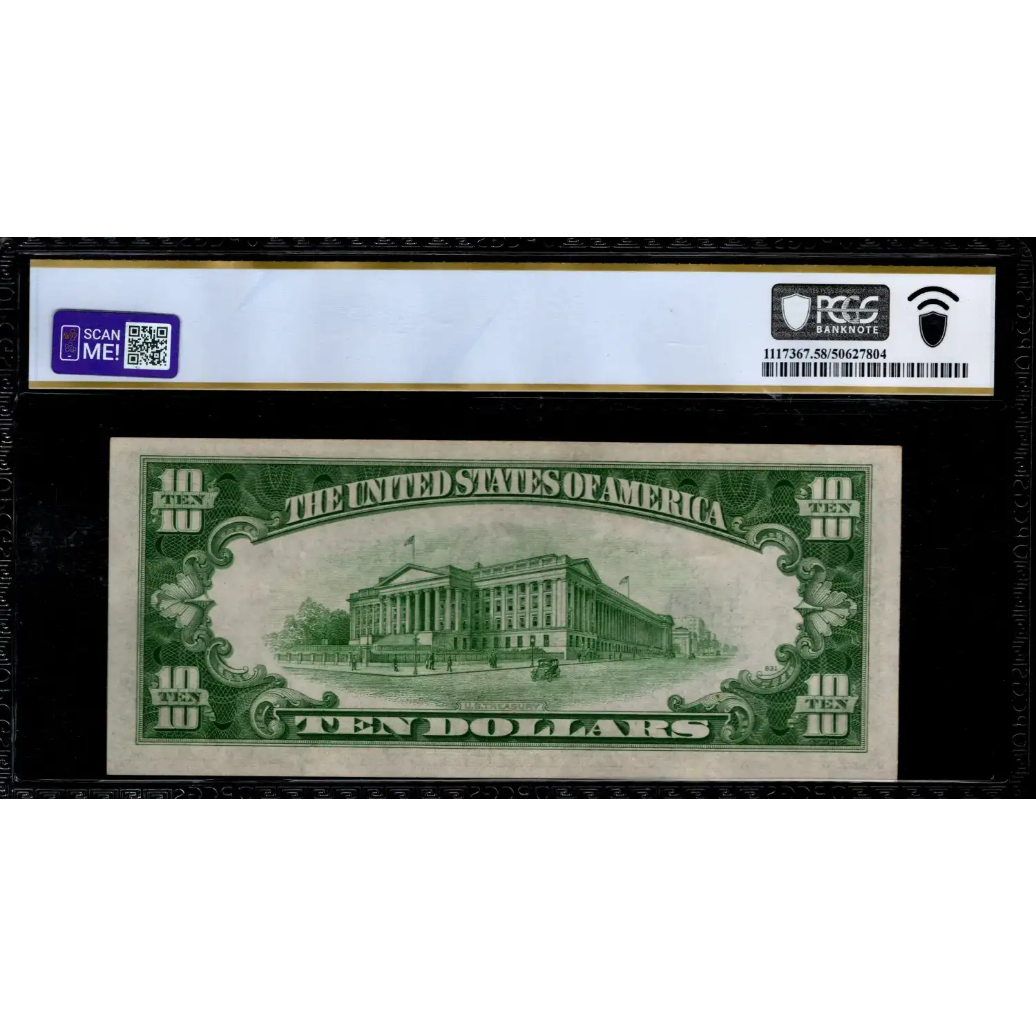 This note appears Uncirculated as any evidence of a light bend must have only been visible prior to encapsulation. This a spectacular example for a collector seeking a seemingly Unc note without an Unc price tag.