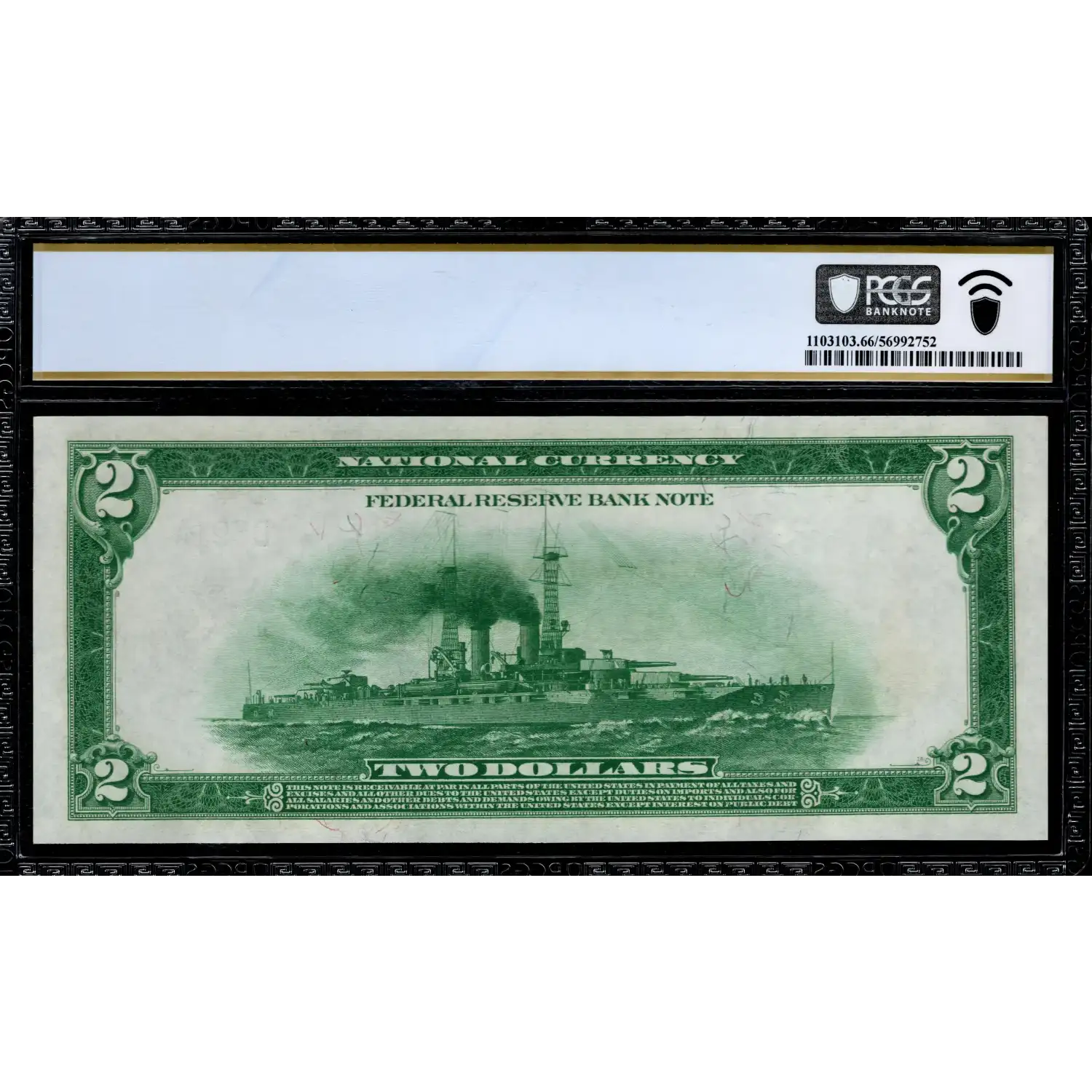 Original embossing as well as excellent colors highlight this well margined, three-digit Battleship Deuce. It is graced by low serial number D591A.