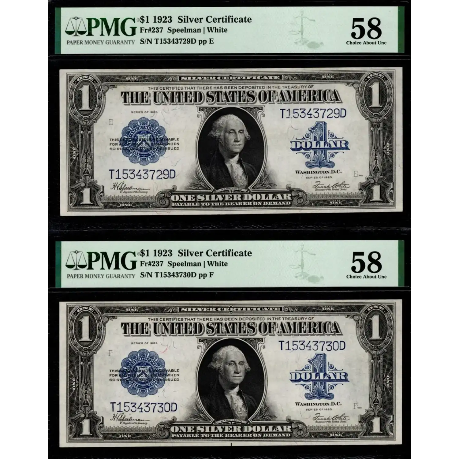 Enjoy a spectacular and sequential pair of Blue Seal Aces from the final series of Large Size Paper Money! This dynamite duo features the popular Speelman-White signature combination and are graded identically with seemingly uncirculated eye-appeal and pleasing margins!
