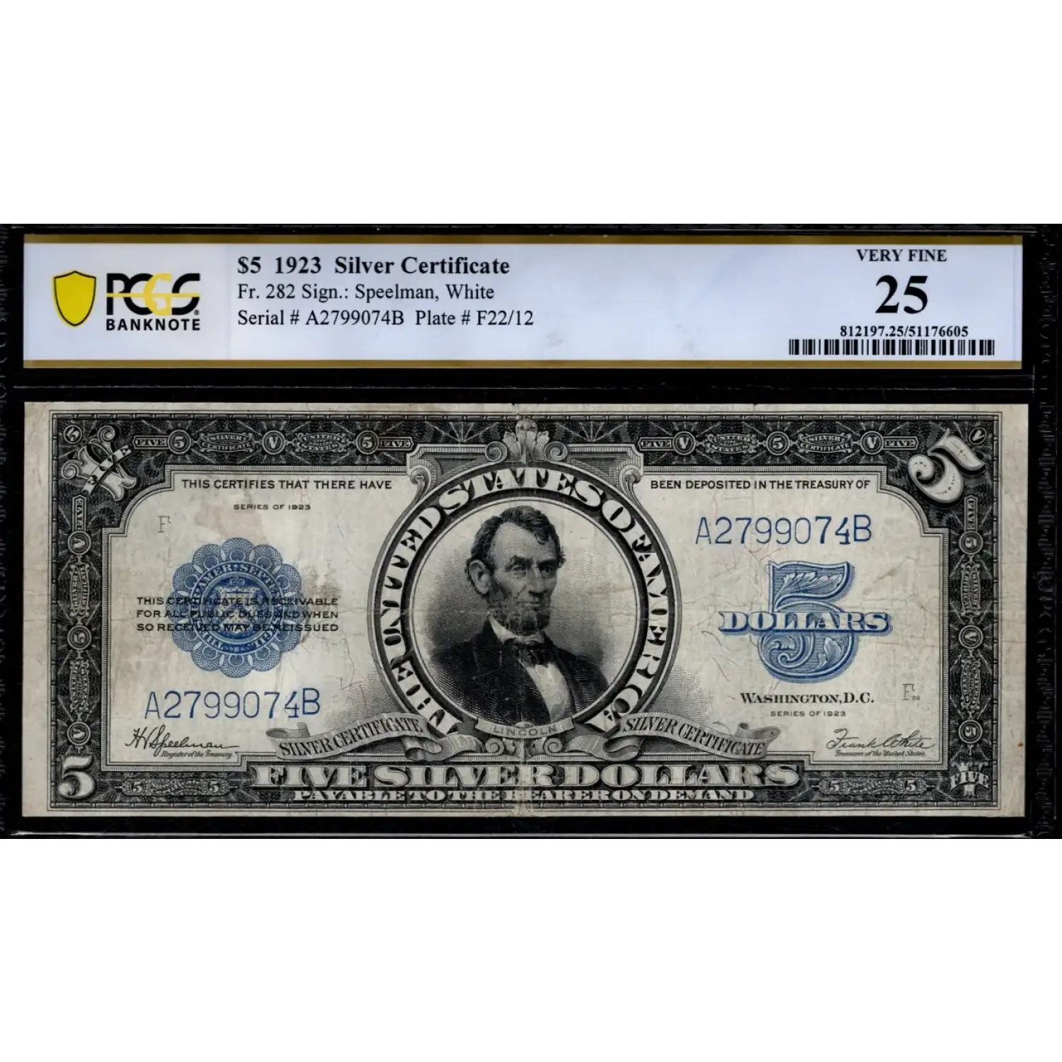 An iconic banknote that belongs in every large size type collection! This mid-grade Lincoln Porthole from 1923 is a one year, one Friedberg number type. Many VF survivors come with objectionable problems or extensive repairs; however, we're pleased to offer an example that is housed in a new PCGS holder with no negative comments or the 'details' comment many have. Priced to sell!