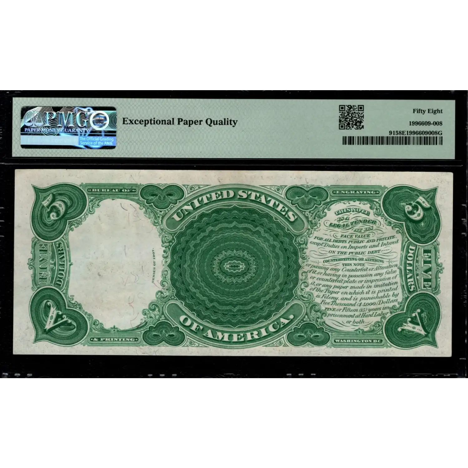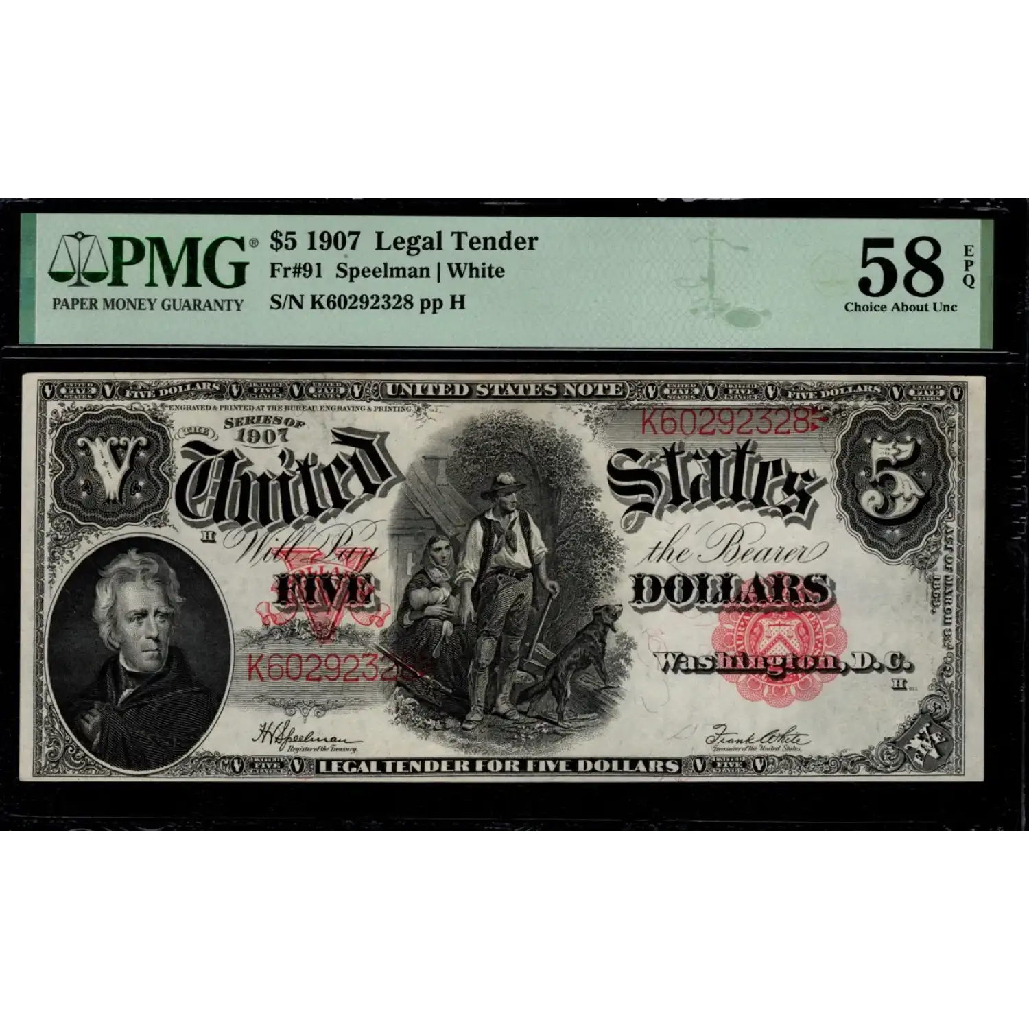 An absolutely gorgeous and nearly uncirculated example of the iconic $5 1907 Woodchopper! This note faces up wonderfully with strong inks and terrific eye-appeal. It easily earned the Exceptional Paper Quality designation as the original surfaces and deep embossing are highlights of this note.