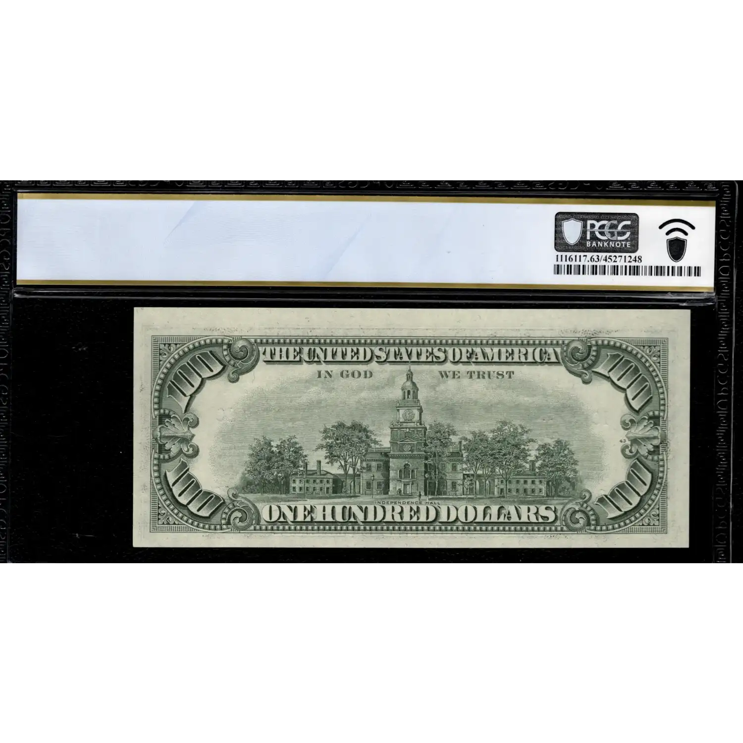 Enjoy a fully-original 1974 Kansas City Hundred featuring the "small head" design! The census shows only 8 pieces reported. Of course, we know there were more than 8 regular issue notes made for the $100 1974 Kansas City district Federal Reserve Note, but most were spent and are found circulating in today's change. As such, only two others have been graded by any third-party grading service: PCGS 67PPQ and PCGS 65PPQ....making this the 3rd finest!