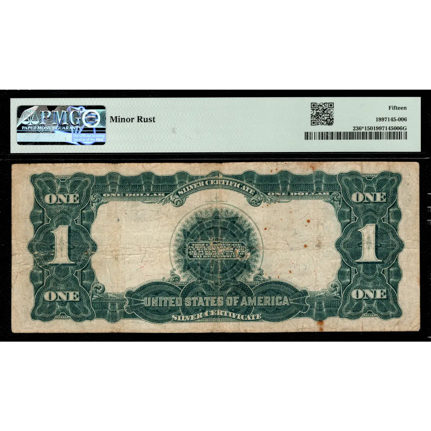 Though circulated, color is bright on this Black Eagle which is coveted because of its star note status. There's a comment of 'minor rust' on the back of the holder. Enjoy a replacement example from the final signature combination on the $1 1899 Silver Certificate.