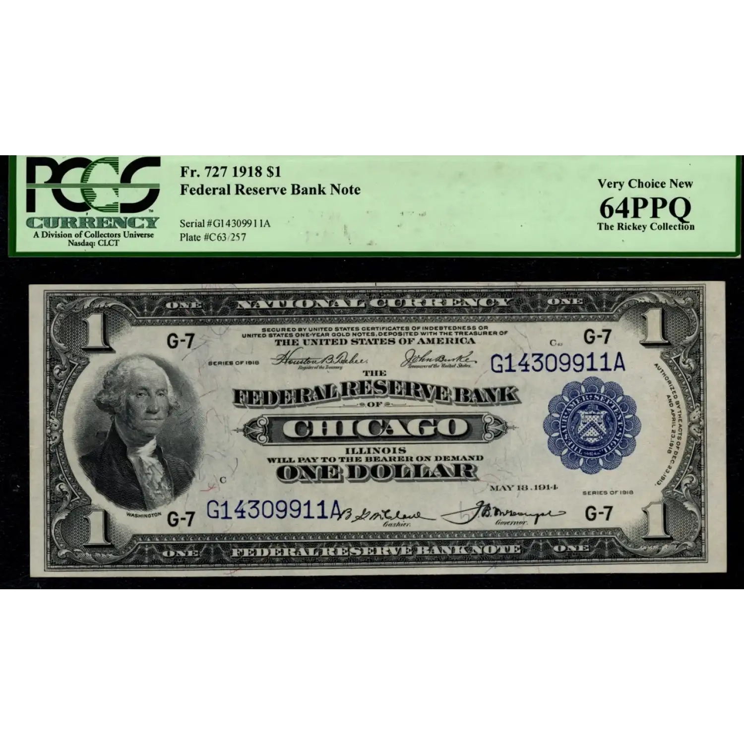 Coming in one point shy of Gem, this boldly inked and well-balanced $1 FRBN from the Chicago district has all the eye-appeal and originality a collector deserves when building his/ her large size collection.