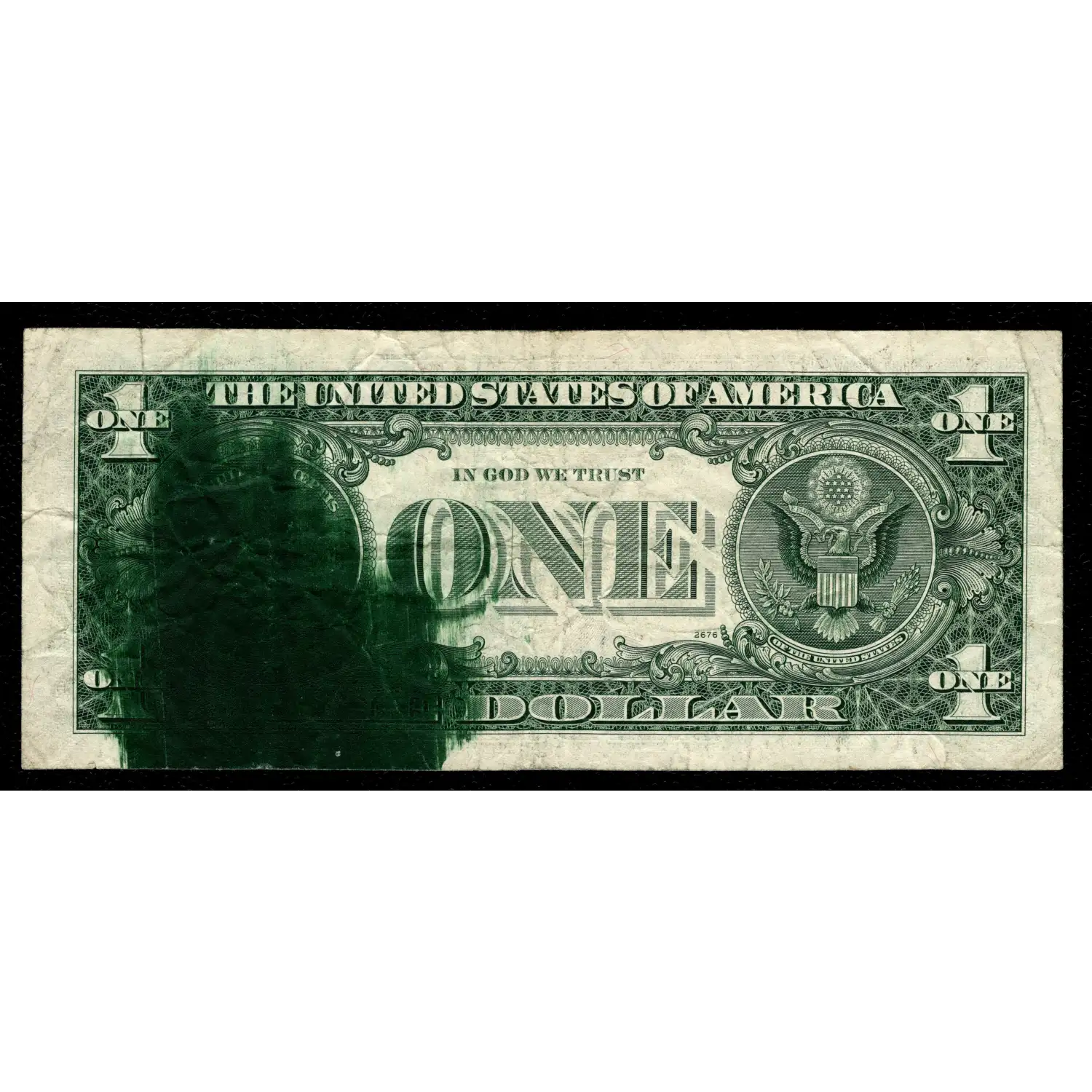 An exciting and excessively inked back with so much extra green ink a significant portion of the back design is obliterated leaving novice and seasoned collectors in awe of this magnificent mistake!